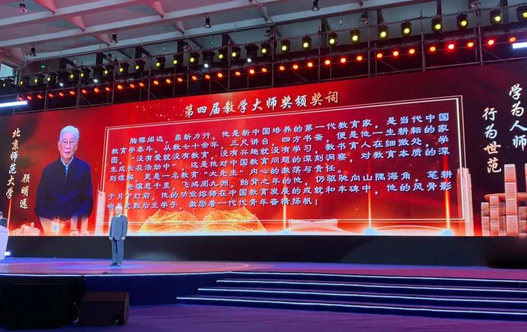 给顾明远教授的颁奖词这样写到:胸襟阔达,鼎新力行。他是新中国培养的第一代教育家,是当代中国教育学泰斗。从教七十余年,三尺讲台,四方书斋,便是他一生耕耘的家园。“没有爱就没有教育,没有兴趣就没有学习,教书育人在细微处,学生成长在活动中”,这是他对中国教育问题的深刻洞察,对教育本质的深刻理解,更是一名教育“大先生”内心的激荡与责任。老骥思千里,飞鸿阅九洲。鲐背之年的他,仍驱驰向山隅海角,笔耕于月下灯前。他的功业熔铸在中国教育发展的成就和丰碑中,他的风骨影响着无数后生学子,激励着一代代青年奋楫扬帆!