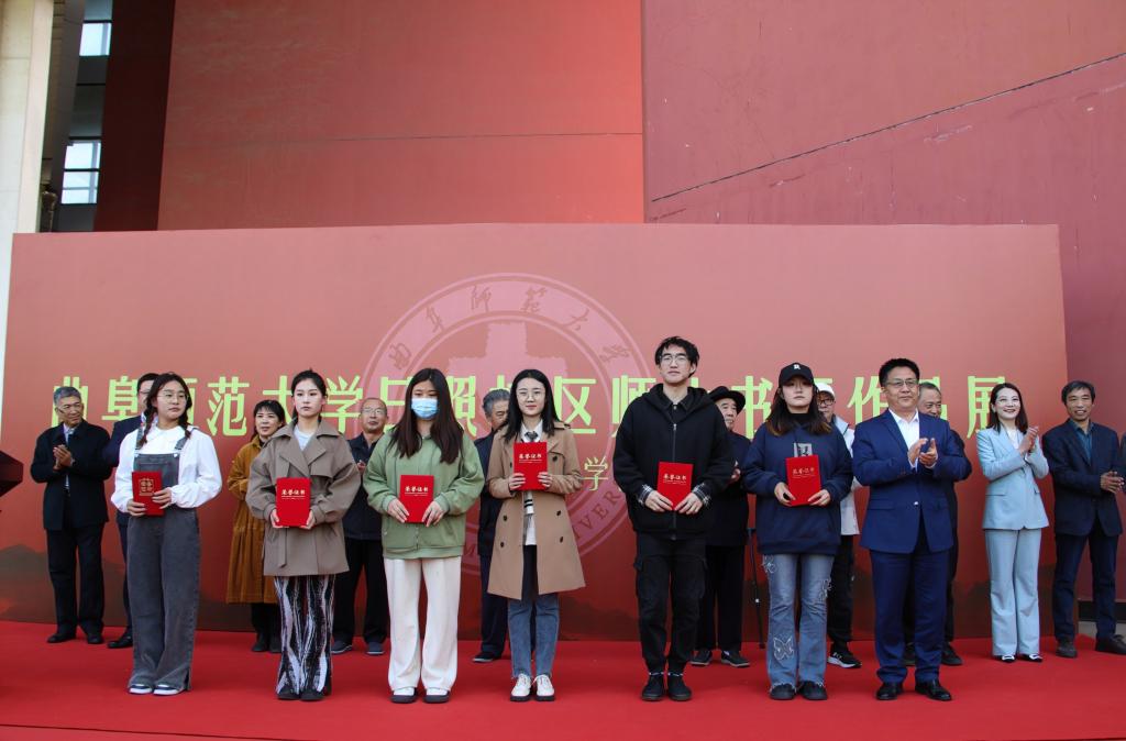 胡凡刚在讲话中指出,图书馆创新工作方法,利用世界读书日等重大活动为契机,开展了丰富多彩的书画学习和鉴赏活动,在全校营造了浓郁的书香氛围,提升了师生的文化素养,带动了校园文化建设。相信本次书画作品展会让大家汲取艺术能量,感受传统文化艺术的内涵和魅力。随后,胡凡刚为获奖学生一一颁奖。