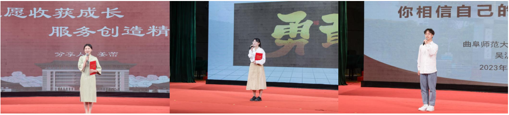 优秀青年学生代表文学院姜蕾、教育学院吴沂骏、生命科学学院杨佳琪、体育科学学院魏永强分别围绕志愿服务、勤学善思、勇敢追梦、参军经历等主题与大家进行了交流分享,以亲身经历鼓励同学们在成长求学的道路上奋楫笃行,成长为坚定理想信念、抓住时代机遇、勇于开拓创新、善于勤学实干的新时代曲园人。