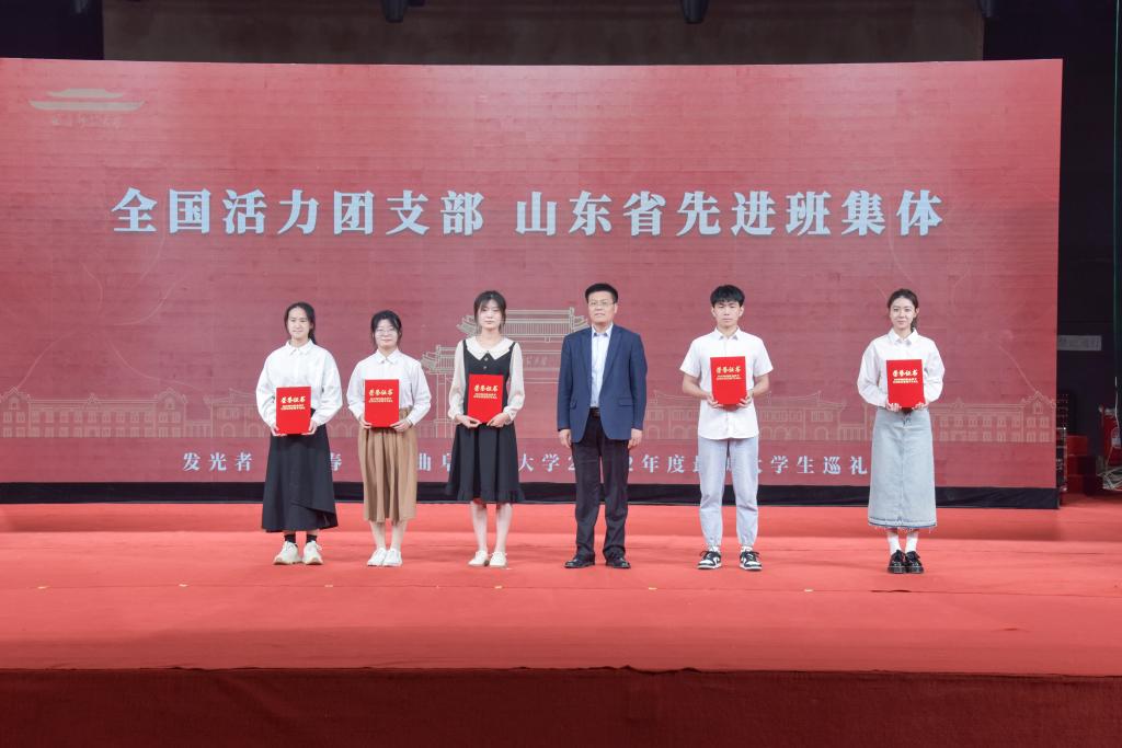巡礼活动播放了各类集体和个人奖项获奖代表的宣传片,出席活动的领导为国家奖学金、省政府奖学金、校长奖学金、省优秀学生、省优秀学生干部、省优秀毕业生、青年五四标兵、十佳共青团员、学科竞赛典型、社会实践先进个人、志愿服务先进个人以及国家级活力团支部、山东省先进班集体的获奖代表颁奖,学生代表向“第二十三届研究生支教团”“2022年退役复学大学生士兵”代表献花。