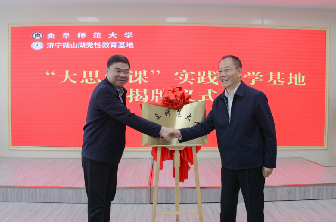 现场教学结束后,党委书记邢光和微山县人大常委会主任王建为开元足球_开元(中国)“大思政课”实践教学基地揭牌。