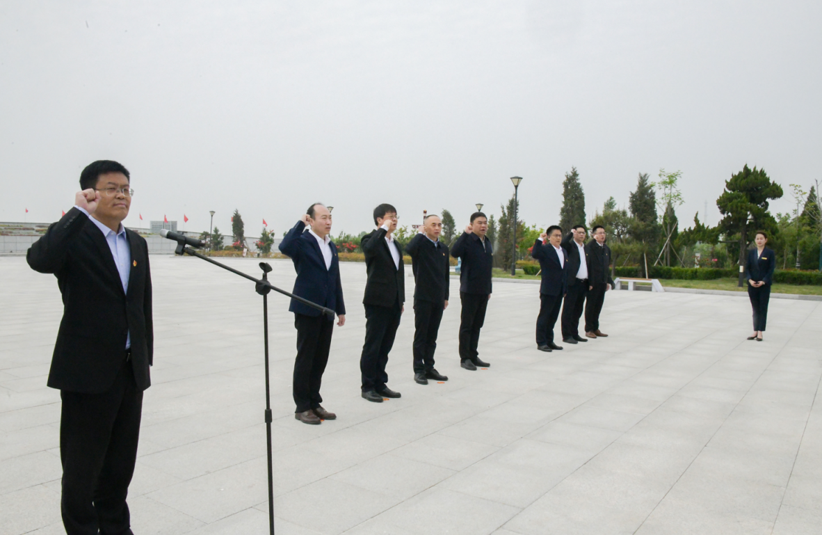 在革命烈士纪念碑前,党委书记邢光带领中心组成员敬献花篮,默哀鞠躬致敬,表达对革命烈士深切追思,对先辈无限崇敬之情。党委副书记卢国强带领大家面向党旗庄严宣誓,重温入党誓词。