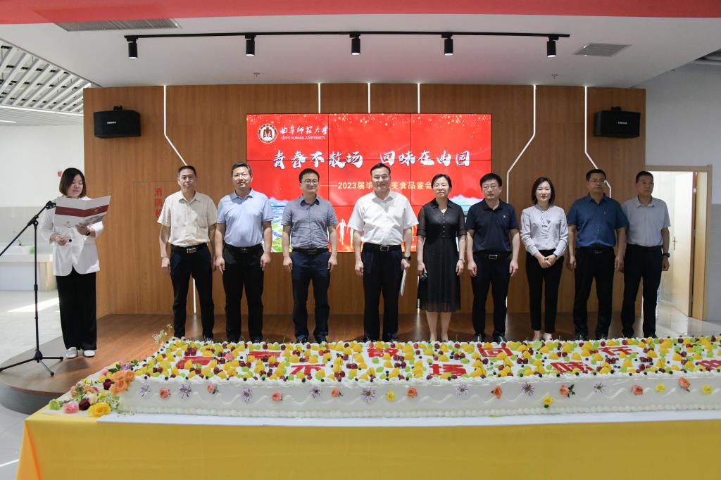曲阜师大后勤管理处讯 6月15日下午,由曲阜师大后勤管理处组织的2023届毕业生美食品鉴会在西区餐厅举行,来自学校17个院系的本科生、研究生毕业生及辅导员共300余人参加了本次活动。学校党委常委、副校长陈刚出席活动,学生工作处、研究生处、团委、后勤管理处相关负责人参加了开幕式,开幕式由后勤管理处副处长张石磊主持。