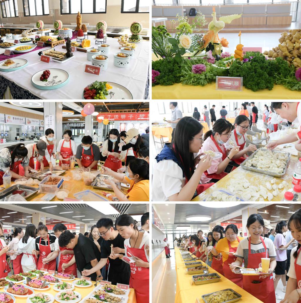在雕刻展示区,各餐厅围绕对毕业生的美好祝福打造了“鸿运当头、节节高升、一帆风顺、百花争放、前程似锦”等花雕展品,寓意浓厚、栩栩如生。在品鉴区,各餐厅推出了蒜蓉秋葵、北京烤鸭、花蛤炒鸡、回锅肉、宫爆鸡丁、鸿运金丝虾球、麻辣小龙虾等100多种美食,传统美食、特色小吃、花样饮品等应有尽有,深受大家欢迎。