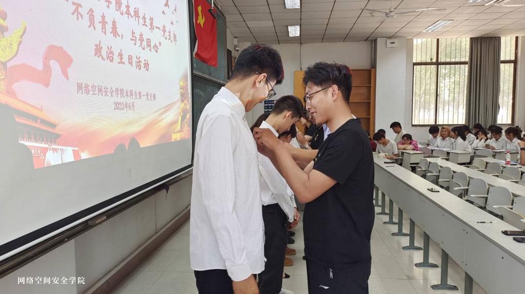 同过“政治生日”,铭记入党荣光。各党委(党总支)、党支部为新入党的学生党员举办了别开生面的“政治生日”,送上了独特的“政治生日”礼物,庆祝光荣入党。网络空间安全学院党支部为新发展的党员同志佩戴党员徽章,法学院学生党支部自制了生日蛋糕立体卡片,直属机构党委孔子文化研究院党支部赠送了政治生日卡……庄重而又温馨的仪式和“礼物”,增强着新入党学生党员的荣誉感、责任感和使命感。