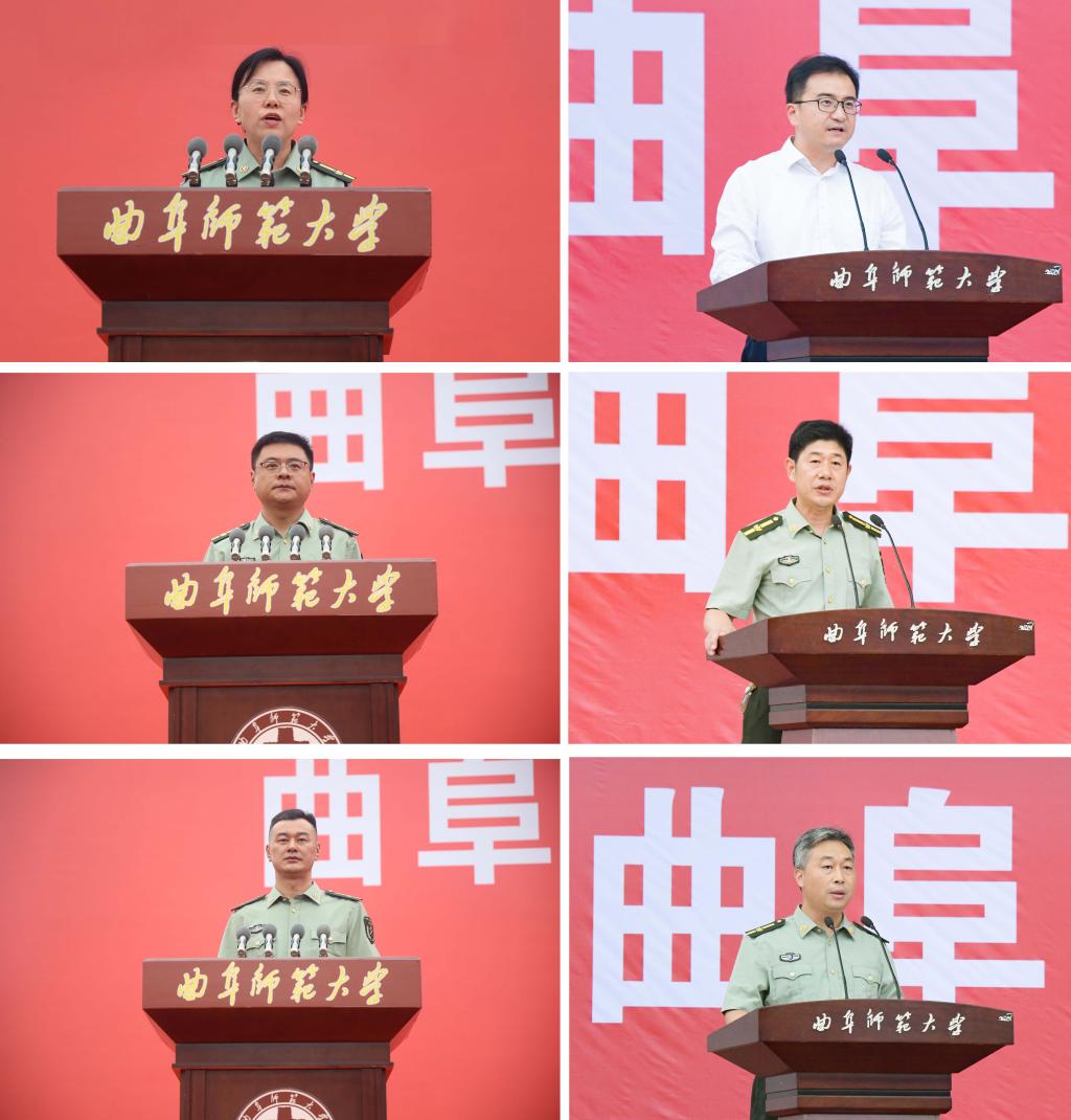 曲阜师大学生工作处讯 9月11日,开元足球_开元(中国)2023级学生军训动员大会分别在曲阜、日照两校区举行。学校党委副书记卢国强,党委常委、副校长胡凡刚,党委常委、副校长刘刚、党委常委、副校长纪洪涛出席大会。学校相关党政部门负责人、各学院负责领导、2023级辅导员、2023级全体参训同学参加大会。大会由学生工作处(武装部)处(部)长、军训旅副旅长姜美颖,团委书记、军训旅副政委孔轶众主持。