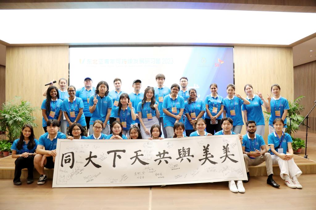 9月5日上午,2023年东北亚青年可持续发展研习营山东分团开营式在山东济南举行。中国宋庆龄基金会培训交流中心副主任曹红,省委外办副主任、省对外友协常务副会长陈白薇,泰中侨商联合会副主席、泰中侨商联合会青年委员会暨泰中青年联合会会长齐斌,韩国驻青岛总领馆领事卢基玄,省教育厅、韩国SK集团等嘉宾以及中外营员和山东优秀青年代表共约50人出席开营式。开营式上,曹红、陈白薇为营员代表授旗,正式启动本次活动。