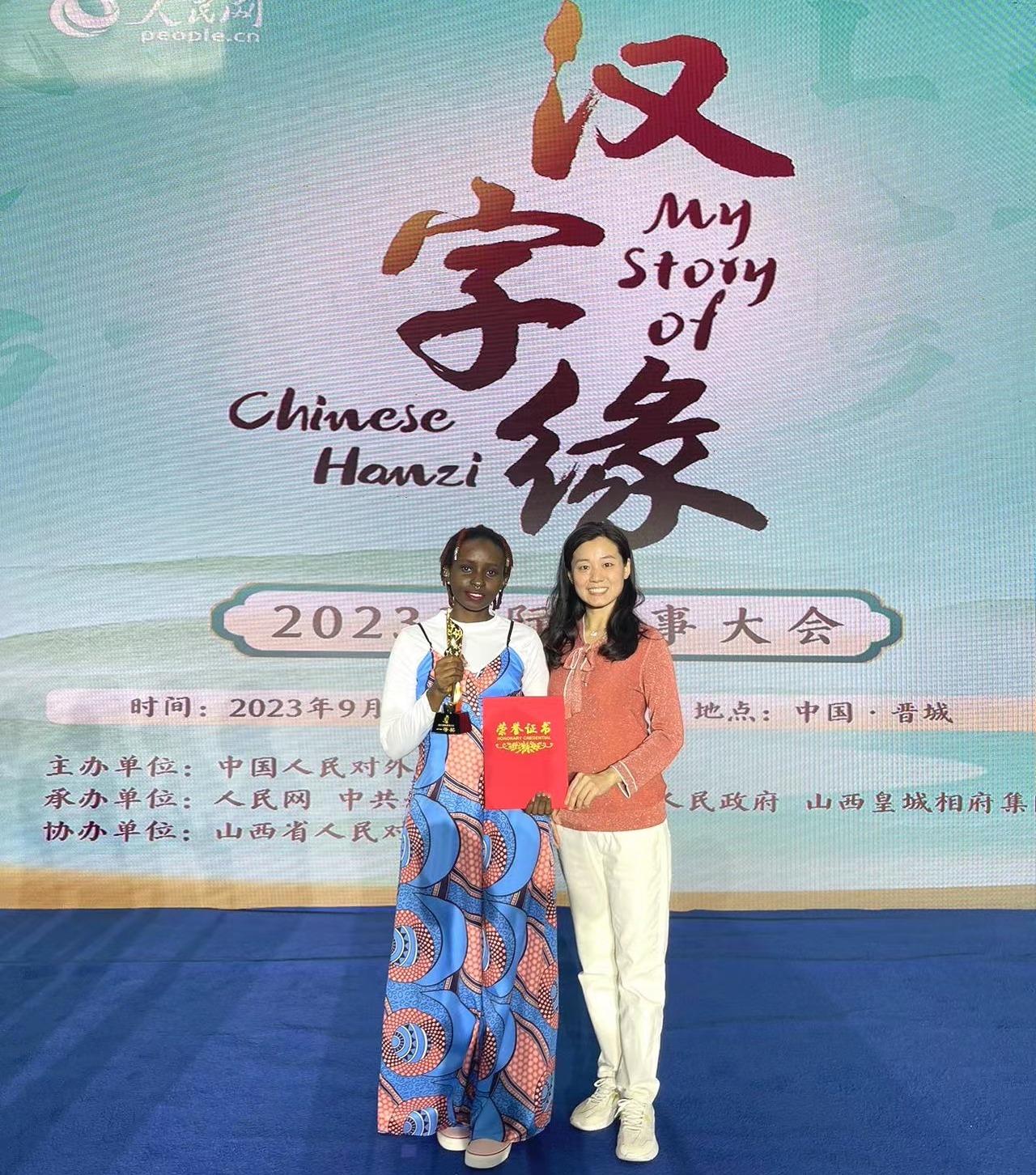 曲阜师大国际教育学院讯  9月14日,由中国人民对外友好协会主办、人民网承办的2023“汉字缘”国际故事大会决赛落下帷幕。曲阜师大国际教育学院肯尼亚籍留学生莉迪亚荣获“汉字缘”国际故事大会决赛一等奖,指导教师高敏获得本次大赛的“优秀指导教师奖”。