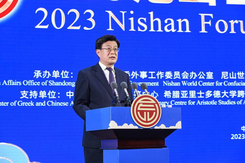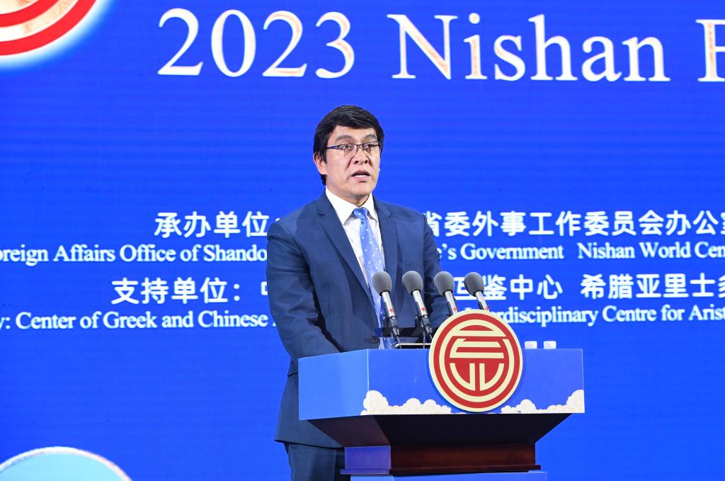 山东省政协党组成员、省社科联主席唐洲雁在开幕式上致辞