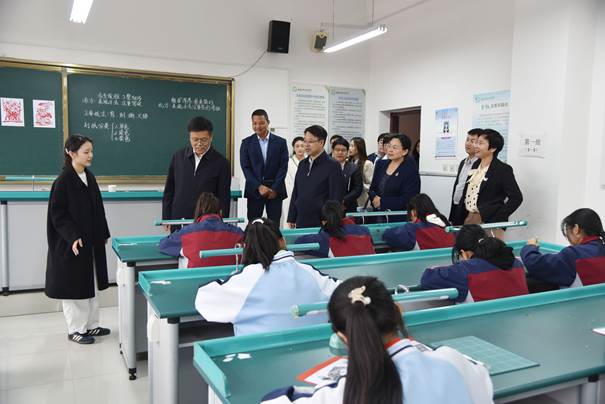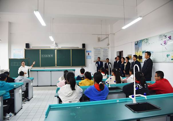 为进一步了解支教团志愿者的工作、生活情况,会后,卢国强一行走访参观了杨陵高级中学初中校区的校园,观摩了学生社团活动和支教团成员授课情况。
