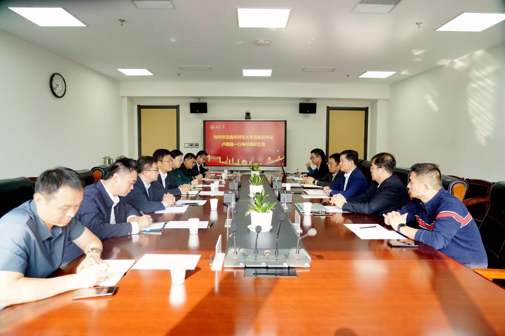 10月13日,党委副书记卢国强带队赴长安大学调研学习。长安大学党委副书记黎开谊会见卢国强一行,并举行了座谈,长安大学学生工作部、团委相关负责同志参加了调研座谈会。座谈会上,黎开谊介绍了长安大学概况以及在学生管理、共青团工作等方面取得的成绩。卢国强表示,长安大学办学特色突出,专业学科优势显著,是交通运输部、国土资源部、住房和城乡建设部重要的人才培养基地,在辅导员队伍建设、思想政治工作、“一站式”社区建设等方面为曲师大提供了宝贵的工作经验。代表团到长安大学的朝晖园示范园区和学生公寓21号楼考察学习,还参观了秦疆情辅导员工作室和交通馆。