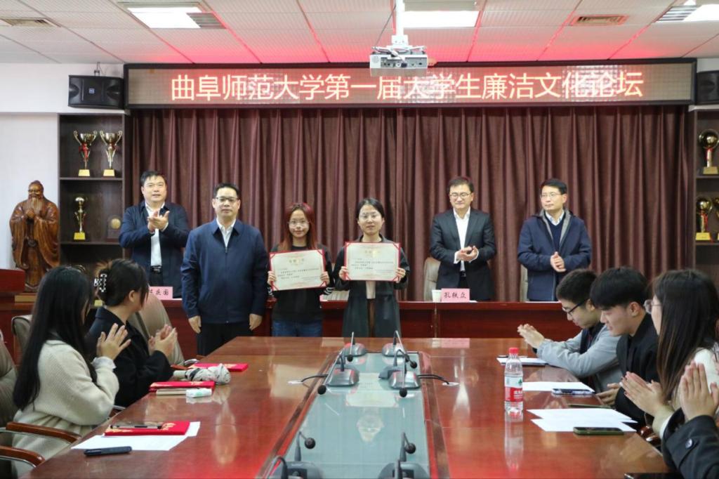 路学堂为第八届高校廉洁教育系列活动征文、短视频获奖学生代表,大学生廉洁文化论坛获奖学生代表颁奖,对全体获奖学生表示祝贺。学校团委书记孔轶众在开幕式上致辞,马克思主义学院副院长任松峰宣读了第一届大学生廉洁文化论坛获奖名单。