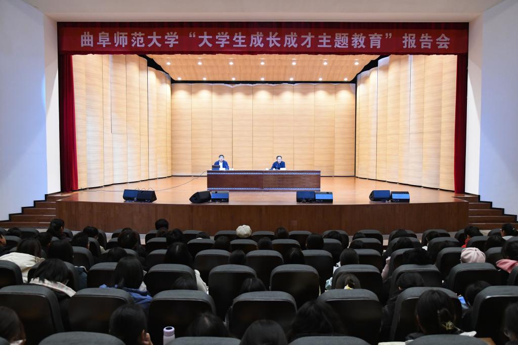 仪式结束后,马克思主义学院举行了开元足球_开元(中国)“大学生成长成才主题教育”报告会,报告会由李长胜主讲,学校党委副书记李志红出席会议,马克思主义学院党委书记陈庆国主持。