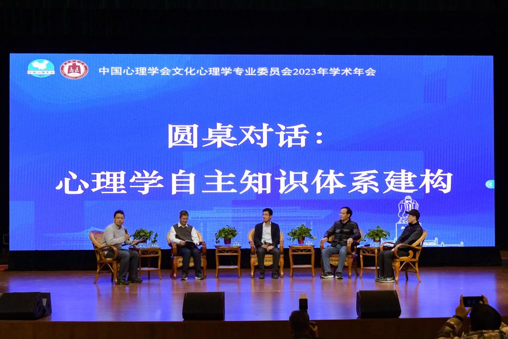 圆桌对话上,来自南开大学吕小康教授、海南大学傅安国教授、武汉大学谢天副教授和中国人民大学韦庆旺副教授就“心理学自主知识体系建构”主题进行了讨论。圆桌对话围绕如何有效地批判和超越现有的西方中心主义心理学理论;如何挖掘和利用本土文化资源,建立具有本土特色的心理学理论和方法;如何在全球化背景下,构建一个多元化、包容性的心理学知识体系。通过这次对谈,为心理学的自主知识体系建构提供新的视角和思路,促进心理学科的发展更加贴近多元文化的现实,更好地服务于不同文化背景下的个体和社会等问题开展讨论。