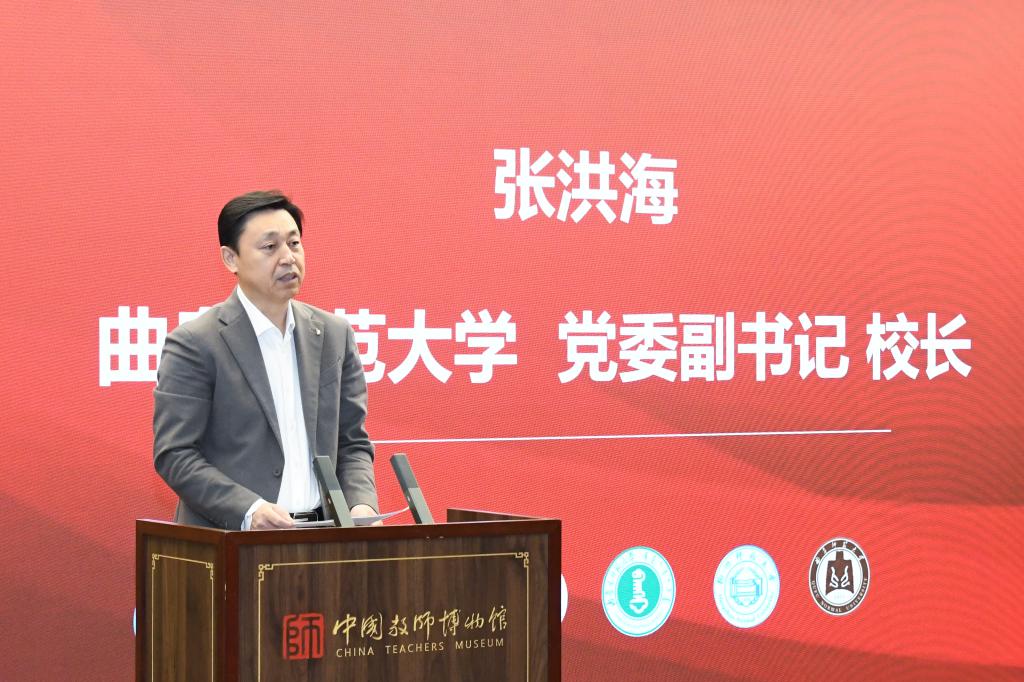 山东省教育厅教师处处长邵学伦在开幕式上致辞,曲阜师大党委副书记、校长张洪海在会上致辞,党委副书记李志红在会上介绍了学校师德师风建设特色工作和典型经验,党委常委、副校长李兆祥在会上以《读懂孔子的智慧,做新时代教育家》为题作了报告,党委常委、副校长胡凡刚主持开幕式。