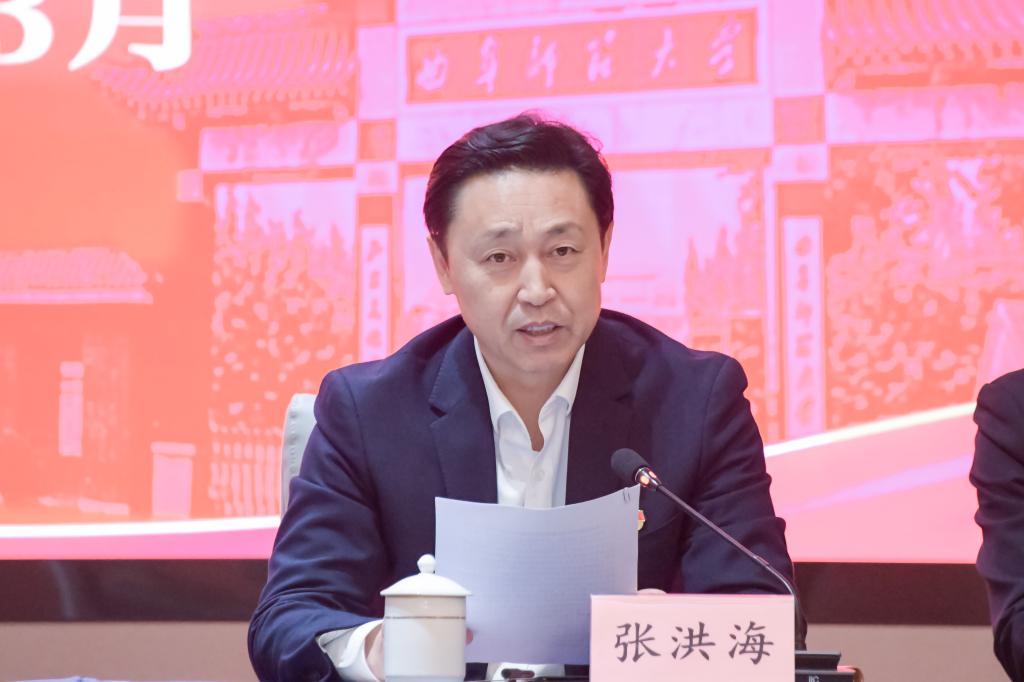 张洪海在主持会议时指出,本次会议是对习近平总书记关于党的建设的重要思想和习近平总书记关于党的自我革命重要思想的再学习、再贯彻,也是对中纪委、省纪委全会精神的再部署、再落实,各单位要切实将会议安排的各项任务领会好、落实好。一要迅速传达学习,确保精神领会到位。各单位要深入领会学校党委对全面从严治党工作的新部署、新要求,教育引导全体党员干部和教职员工,切实把思想和行动统一到党中央决策部署和学校党委工作要求上来。二要对标梳理思路,确保谋划部署到位。要结合当前学校发展实际和各单位全面从严治党面临的新形势、新要求,以科学的思路、创新的举措谋划部署本单位全面从严治党和党建工作,推动学校各项决策部署和重点任务落地见效。三要履职担当尽责,确保工作落实到位。要压紧压实责任链条,各级党组织和领导干部要扛牢全面从严治党主体责任、“第一责任人”责任和“一岗双责”,确保各项部署落地、落细、落实,为推进学校高质量发展提供坚强政治保障。