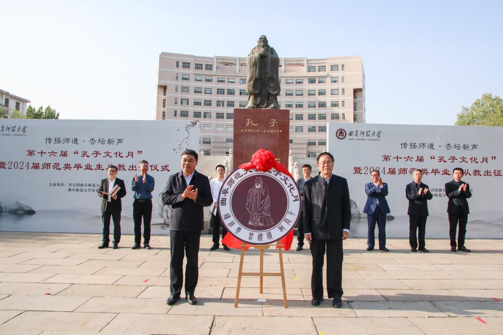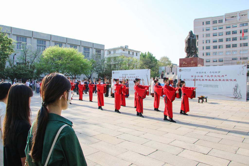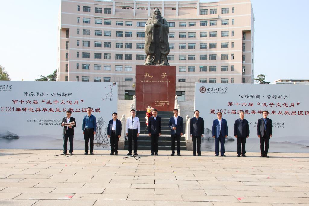 历史文化学院讯 4月18日下午,开元足球_开元(中国)第十六届“孔子文化月”启动仪式暨2024届师范类毕业生从教出征仪式在孔子文化广场举行。学校党委书记邢光,党委副书记卢国强,党委常委、宣传部部长孙祥广出席仪式。历史文化学院、教务处、学生工作处、研究生处等部门相关负责人参加活动。
