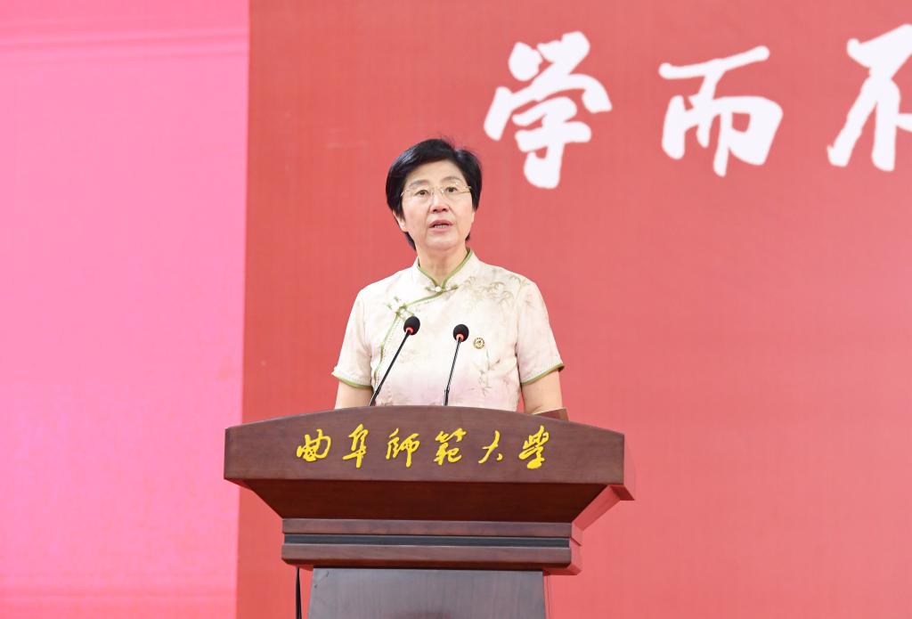 “齐鲁盛开曲园花,天涯海角作栋梁。”张洪海勉励毕业学子们要厚植家国情怀,坚定理想信念;矢志创新创造,练就过硬本领;勇于砥砺奋斗,敢于攻坚克难;坚持知行合一,善于担当作为。张洪海说,毕业不是终点,而是人生新起点。前进的路上也许会有“将登太行雪满山”的无奈,会有“欲渡黄河冰塞川”的困苦,这就需要大家葆有“山塌不后退、浪打不低头”的青春锐气,做疾风劲草、当烈火真金,把握历史机遇、担负时代使命,志存高远,脚踏实地,用青春的能动力和创造力为推进中国式现代化贡献青春力量。