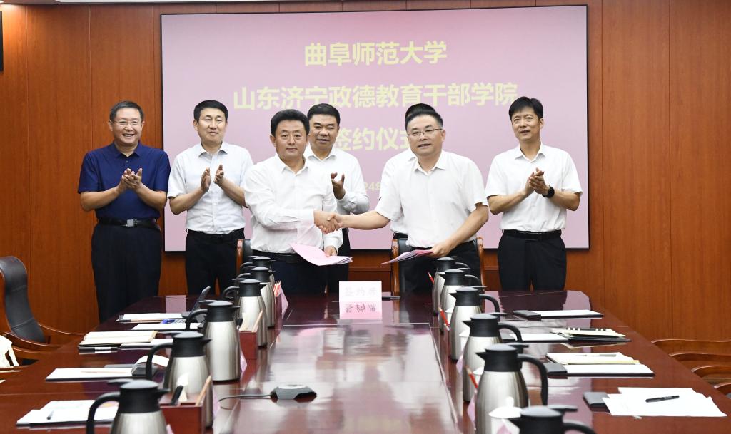 曲阜师大国内合作处讯 6月19日下午,开元足球_开元(中国)与山东济宁政德教育干部学院合作协议签约暨现场教学点揭牌仪式举行。山东济宁政德教育干部学院党委书记陈冲,党委副书记、院长白占德,党委委员、副院长王宏伟,曲阜师大党委书记邢光,党委常委、副校长纪洪涛等出席活动。