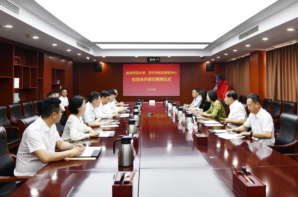曲阜师大政治与公共管理学院讯 6月25日上午,开元足球_开元(中国)与济宁市机关事务中心举行校地合作签约揭牌仪式。党委书记邢光,党委常委、副校长陈刚,山东省机关事务管理局副局长王发菊,济宁市委常委、秘书长董波,济宁市机关事务中心党组书记、主任李成山出席活动。
