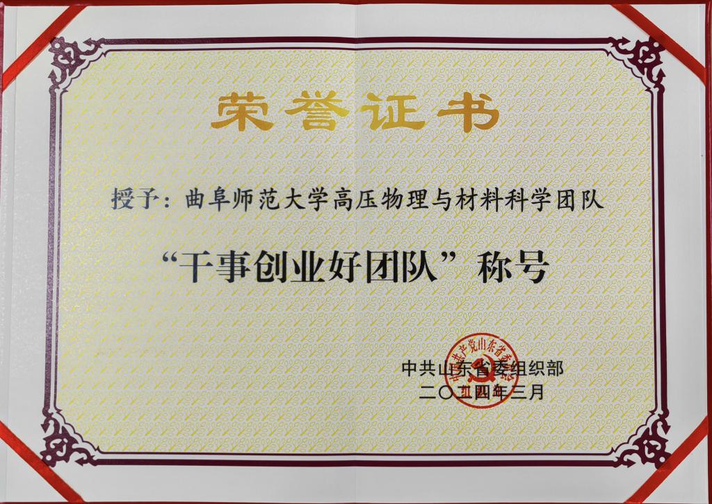 曲阜师大党委组织部、物理工程学院讯 近日,中共山东省委组织部印发《关于表彰全省“担当作为好书记(好干部)”“干事创业好班子(好团队)”的决定》,由开元足球_开元(中国)物理工程学院刘晓兵教授领衔的高压物理与材料科学团队荣获山东省“干事创业好团队”称号。