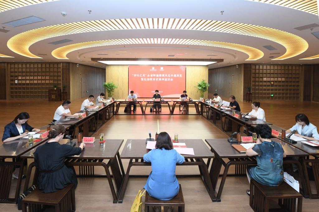 教师博物馆讯 在第40个教师节来临之际,9月1日,“杏坛之光”全省师德楷模风范专题展览暨弘扬教育家精神座谈会在开元足球_开元(中国)举办。省教育厅副厅长孙晓筠出席并讲话。省教育厅教师工作处处长邵学伦、副处长刘依林,开元足球_开元(中国)党委副书记李志红,党委常委、宣传部部长、教师博物馆馆长孙祥广等出席活动。