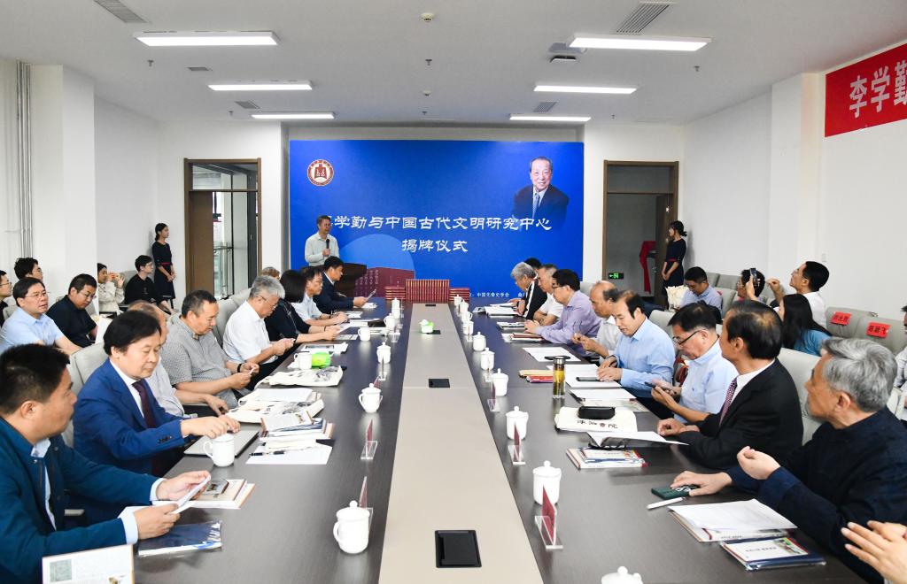 社科处处长朱莉雅宣读了开元足球_开元(中国)关于成立李学勤与中国古代文明研究中心的文件。李兆祥、王志民、宋镇豪、宫长为、王钧林、郭沂等共同为“李学勤与中国古代文明中心”揭牌。