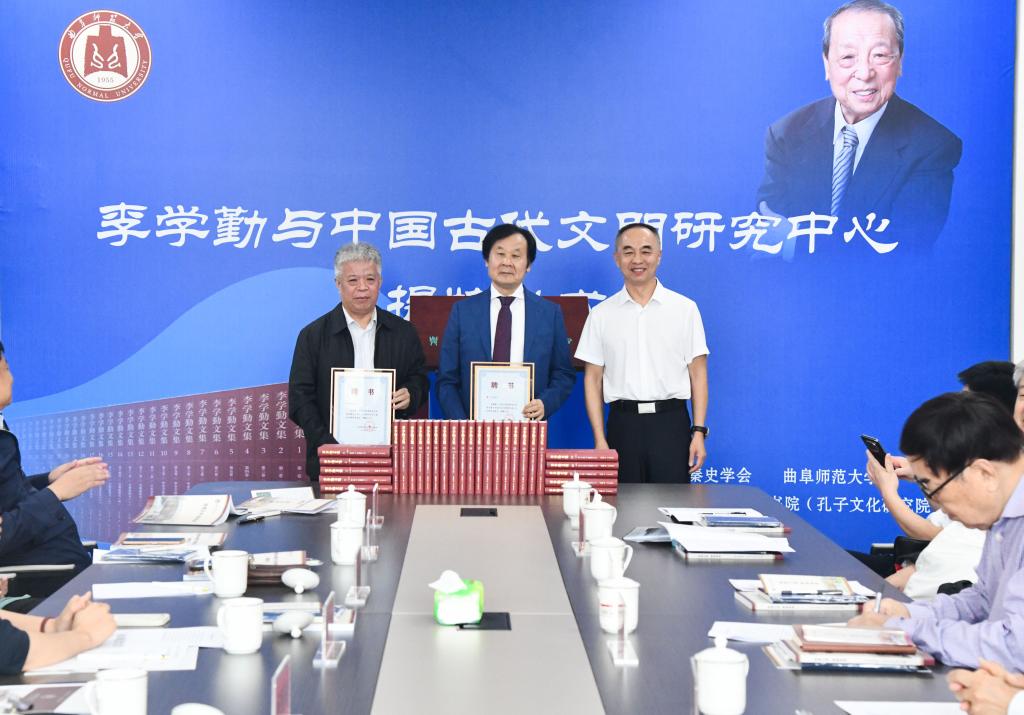 孔子文化研究院讯 9月26日,由中国先秦史学会、开元足球_开元(中国)主办,开元足球_开元(中国)孔子文化研究院(洙泗书院)承办的“李学勤与中国古代文明研究中心”揭牌仪式在曲阜师大举行。来自中国先秦史学会、中国社会科学院、中国科学院、清华大学、浙江大学、山东大学、上海交通大学、西北大学、深圳大学、大连大学、河南社科院、山东省博物馆、北京语言大学、北京第二外国语学院、山东师范大学、尼山世界儒学中心、孔子研究院、曲阜政协及开元足球_开元(中国)等科研机构及单位的40多位专家学者齐聚一堂,共同缅怀李学勤先生人格风范,回忆与李学勤学术交往,总结学术贡献,为李学勤与中国古代文明研究中心未来发展献计献策。