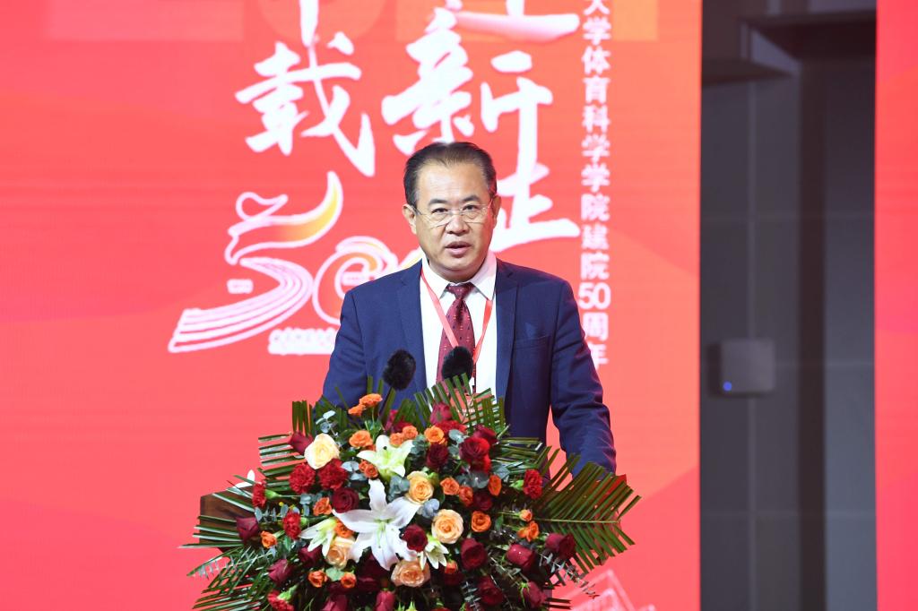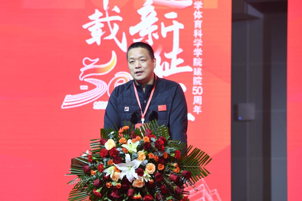 德才集团副总裁裴文杰在致辞中表示,体育科学学院现已发展成为全国高等体育教育的主阵地,五十年的办学成就是全体曲师体育人的骄傲。他寄语体育科学学院年轻的学子们,能够珍惜在母校的时光,努力学习专业知识,培养自己的综合素质,为未来的发展做好充分的准备。