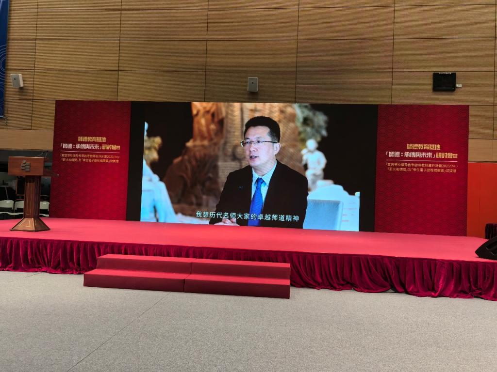 附属中小学副校长吴兆灵、教师毕文凤,分别结合学校和工作实际做了师德经验报告,教师博物馆相关负责人受邀共同为香港获奖教师代表颁奖。