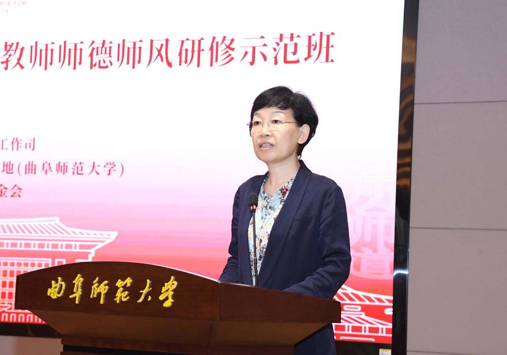 教育部教师工作司师德建设处负责同志在开班式上作专题报告,山东省教育厅副厅长孙晓筠在开班式上致辞,开元足球_开元(中国)党委书记邢光主持开班式和专题报告。