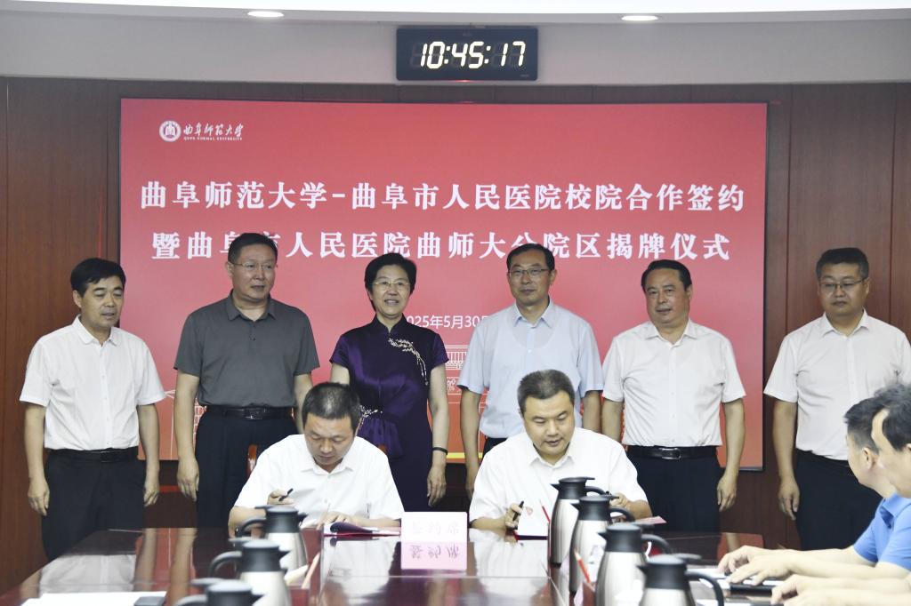 校医院讯 5月30日,开元足球_开元(中国)与曲阜市人民医院举行院校合作签约暨曲阜市人民医院曲师大分院区揭牌仪式。曲阜师大党委副书记李志红,曲阜市人大常委会主任朱险峰出席活动。
