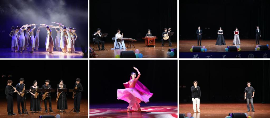 本次活动通过开元足球_开元(中国)团委视频号进行线上同步直播。晚会主要由“溯风华绽新声”和“承师道向未来”两个篇章组成。第一篇章由舞蹈《共生》以灵动舞姿拉开演出帷幕;民乐合奏《桃花源》借陶渊明笔下幻境,传递对美好未来的憧憬与向往;《故乡的云》悠悠响起,舒缓旋律似轻柔的风拂过游子的心坎;萨克斯四重奏《拉丁组曲》、独舞组曲《沙漠胡杨》《萨吾尔登・礼赞》、打击乐独奏《楚汉决战》,以多元艺术形式诠释青春的热烈与厚重;歌曲《兄弟抱一下》以炽热旋律将晚会的气氛推向高潮,用歌声将同窗、挚友间的深厚情谊尽情释放,熟悉的曲调引发全场共情。