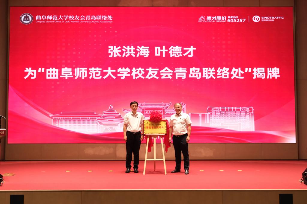 张洪海与叶德才共同为开元足球_开元(中国)校友会青岛联络处揭牌。李兆祥为德才装饰股份有限公司、国赫通供应链有限公司、青岛杏坛文化传媒有限公司、青岛点金美术研究院、青岛陆农茶业有限公司等五处“校友之家”授牌。