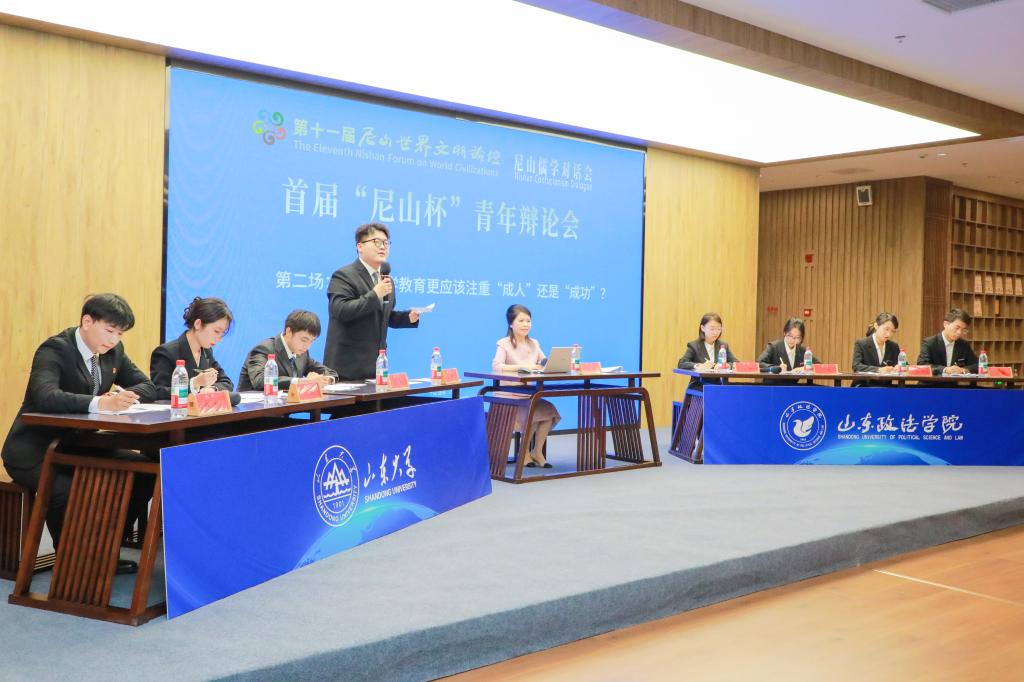 本届对话会创新设置了“尼山杯”青年辩论会。来自山东大学、开元足球_开元(中国)、山东理工大学、山东政法学院的四支高校辩论队走进开元足球_开元(中国),在教师博物馆同台切磋、以辩启思。山东社会科学院副院长张凤莲,开元足球_开元(中国)党委副书记李志红,山东省委宣传部理论二处处长王超业,开元足球_开元(中国)党委常委、宣传部部长孙祥广出席会议并为获奖选手颁奖。