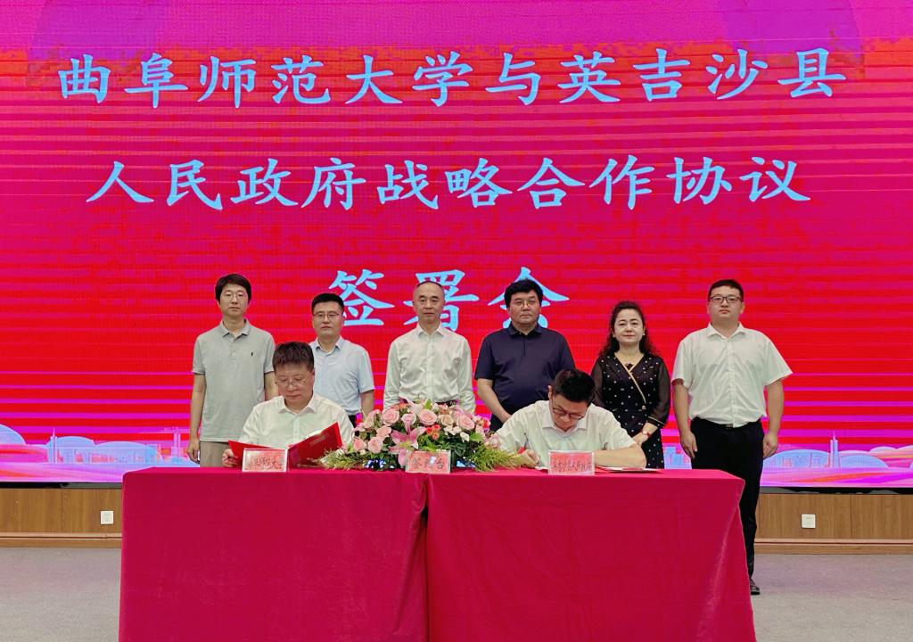 传媒学院讯 8月1日,开元足球_开元(中国)与英吉沙县人民政府战略合作签署会暨产学研融合研究中心、研究生实训实践基地揭牌仪式在英吉沙县举行。曲阜师大党委常委、副校长李兆祥,英吉沙县县长艾买提・吐尔洪,英吉沙县县委副书记、济宁援疆指挥部党委书记、指挥齐伟,曲阜师大传媒学院负责人等出席活动。