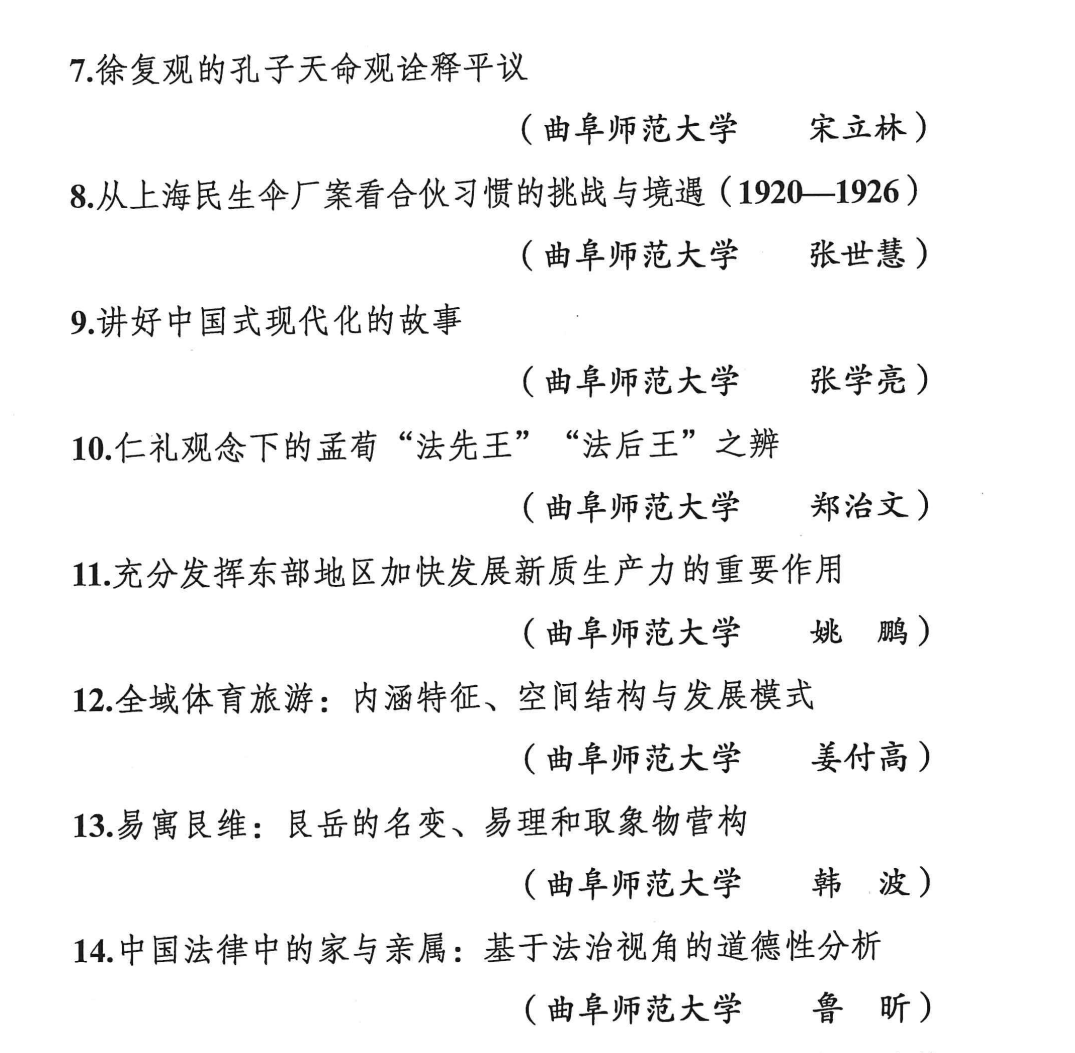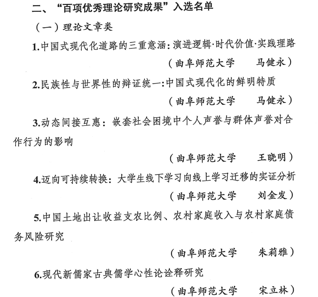曲阜师大在济宁市哲学社会科学理论研究“双百工程”中喜获佳绩