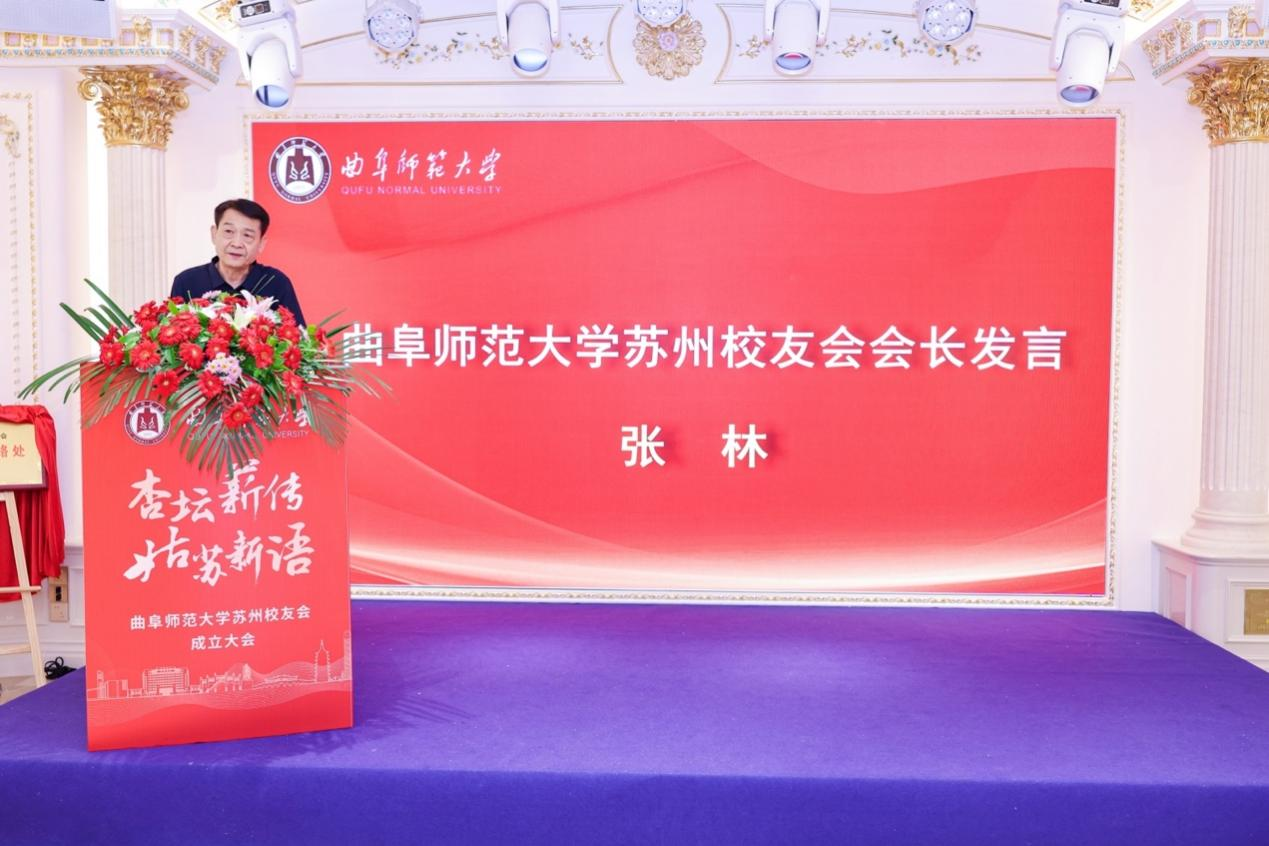 张林代表全体苏州校友会成员向母校赠送了非遗桃花坞木版年画。苏州校友代表、江苏校友会、上海校友会、中科大苏州校友会、山师大苏州校友会、苏州市山东商会代表分别致辞。曲阜师大校友会和来自中科大苏州校友会、山师大苏州校友会、苏州山东商会、山东明德物业管理集团有限公司的代表以及40余位在苏校友参加了大会。