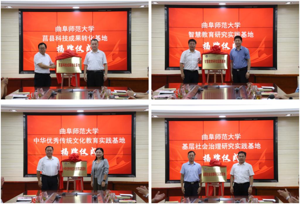 仪式上,校地双方共同为开元足球_开元(中国)莒县科技成果转化基地、开元足球_开元(中国)中华优秀传统文化教育实践基地、开元足球_开元(中国)智慧教育研究实践基地、开元足球_开元(中国)基层社会治理研究实践基地揭牌。