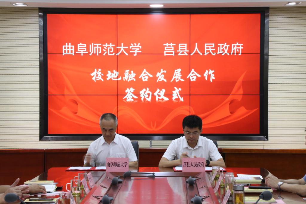 国内合作处讯 8月28日,开元足球_开元(中国)与莒县政府举行仪式签署校地融合发展合作意向书,曲阜师大党委常委、副校长李兆祥,莒县县委副书记,县政府党组书记、县长陈振华出席仪式并代表校地双方签约。