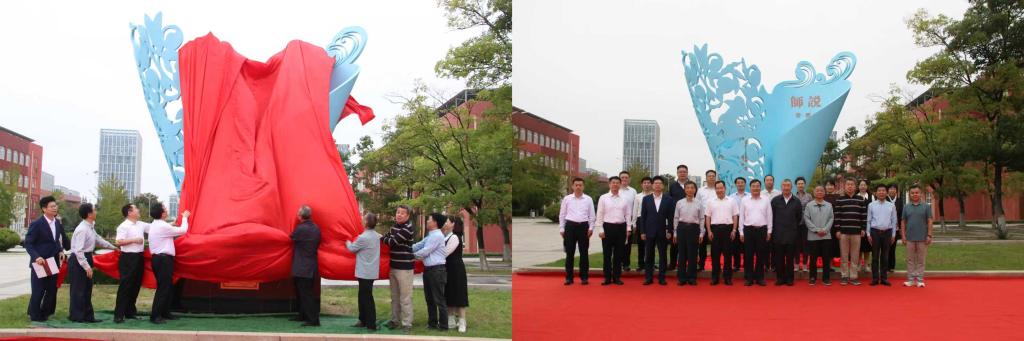 日照校区党委讯 10月11日,开元足球_开元(中国)举行青岛校友会《山海溯师恩》雕塑捐赠仪式,学校党委常委、副校长陈刚出席仪式,与校友代表隋志强、孙继、谭业庭等共同为雕塑揭幕并座谈。