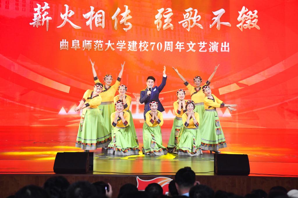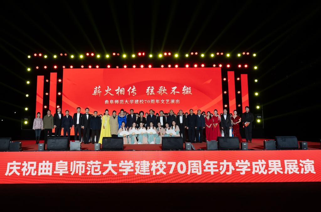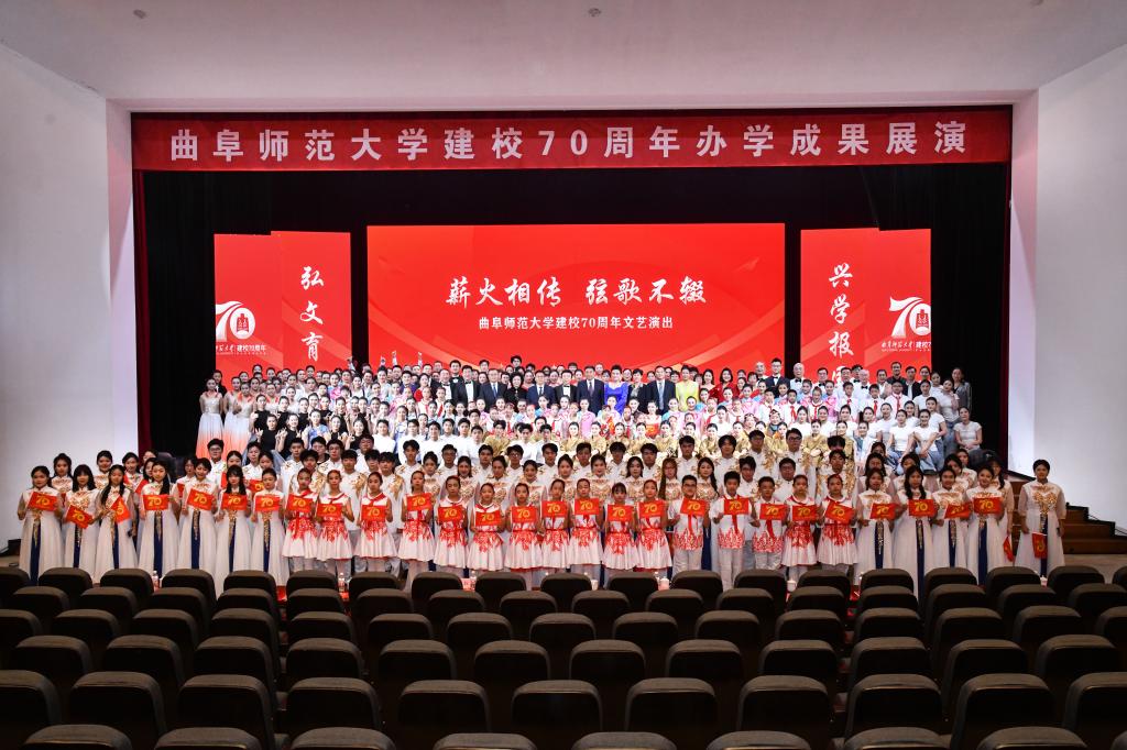 展演气势恢宏、流光溢彩,以歌曲联唱、舞蹈、诗朗诵、合唱等多种艺术形式联袂呈现,奏响了学校70周年华诞的精彩乐章,生动展现了开元足球_开元(中国)七十年来在传承儒家文化、深耕教育科研、培育时代新人的征程中所书写的坚守史、创新史与育人史。整场演出热情洋溢,传递出矢志不渝建设世界知名的高水平孔子家乡大学的奋斗之志。