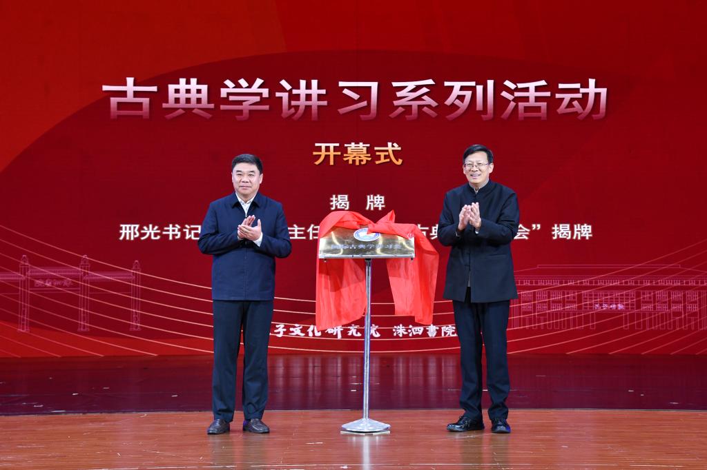 邢光与蔡先金共同为“国际古典学讲习会”揭牌,蔡先金为“古典学讲习会”导师颁发会士证书。