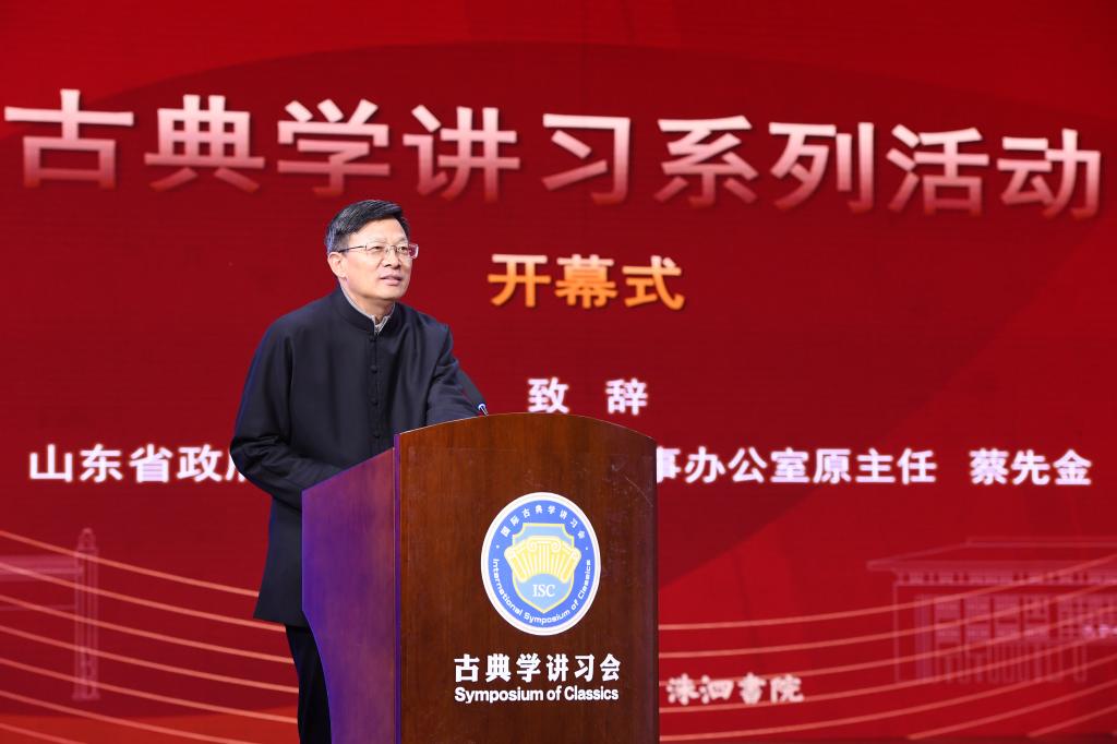 蔡先金在致辞中向山东省文旅厅、曲阜师大的无私支持表示由衷的谢意,并表示,“国际古典学讲习会”为古典学界相互交流搭建了优质平台。他指出,古典学的复兴是时代的发展使然,具有东方属性、大陆属性、人格属性和大同属性,旨在为人类提供丰富的精神食粮,古典学界要识大势,守初心,担使命,为推动文明互鉴,守正立新做出应有贡献。