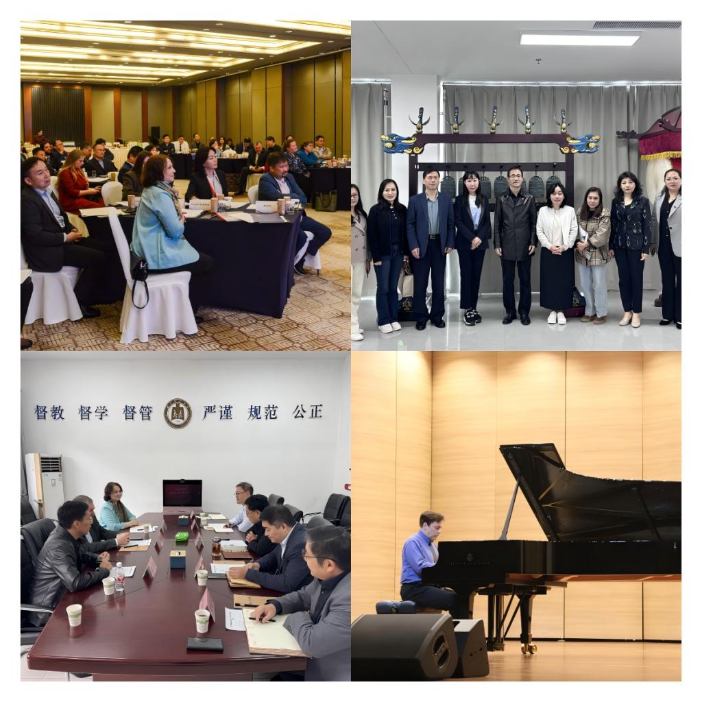 校庆期间,国际交流合作处还组织了多项特色活动。加拿大蒙克顿大学钢琴家罗杰·罗德教授的中外古典音乐演奏会成为校庆一大亮点。同时,根据友好学校的不同需求,安排了与相关学院及职能部门的专项对接。10月19日,俄罗斯莫斯科国立师范大学看望了在校留学生,并与教务处、外国语学院、国际教育学院座谈,探讨留学生教育与数字教育合作等事宜;韩国水原大学代表团与音乐学院就师资派遣进行磋商,并实地考察教学设施和校园环境。