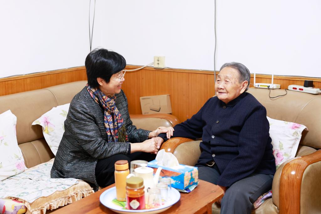 离退休工作处讯 重阳佳节,敬老情浓。为弘扬中华民族尊老、敬老、爱老的传统美德,10月28日,校党委副书记李志红一行走访慰问了经济民、李素萍两位百岁老人,向他们送上学校的关怀与温暖,并致以节日的诚挚问候和美好祝福。