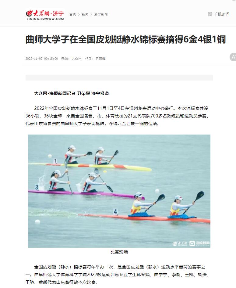 【大众网】曲师大学子在全国皮划艇静水锦标赛摘得6金4银1铜
