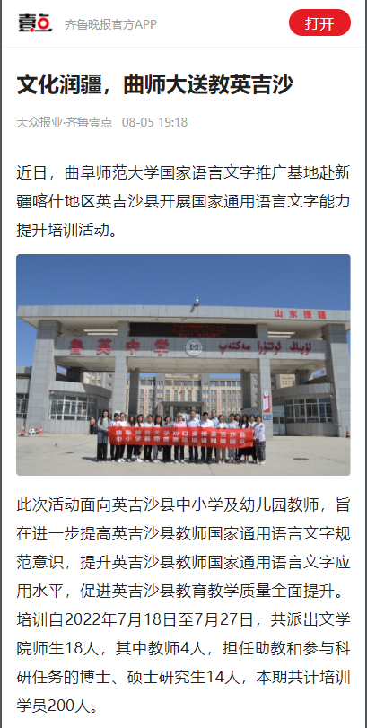 【齐鲁壹点】文化润疆,曲师大送教英吉沙