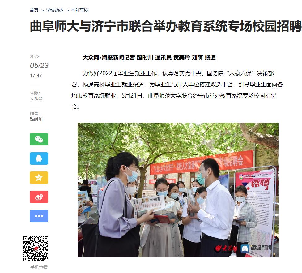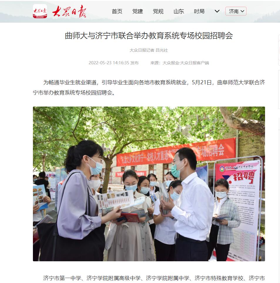 【大众日报客户端】曲师大与济宁市联合举办教育系统专场校园招聘会
