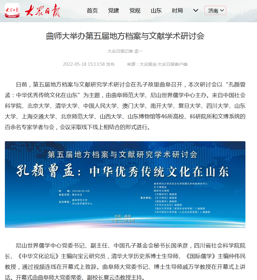 【大众日报】曲师大举办第五届地方档案与文献学术研讨会